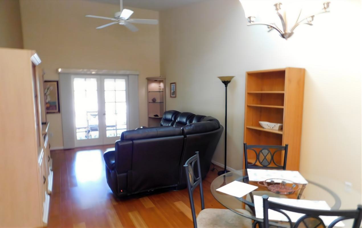 | Lightly furnished and move-in ready! This updated 2nd-floor condo features vaulted ceilings, skylights, and a sleek kitchen with stainless appliances. Located steps from the clubhouse and tiki bar, the unit includes all utilities, a private carport, and a social membership (golf, dining, and more). The layout offers a Primary Suite with a walk-in closet and an unfurnished guest room—perfect for an office or extra bedroom. Flexible furnishing options available; items can be removed upon request. | ||
